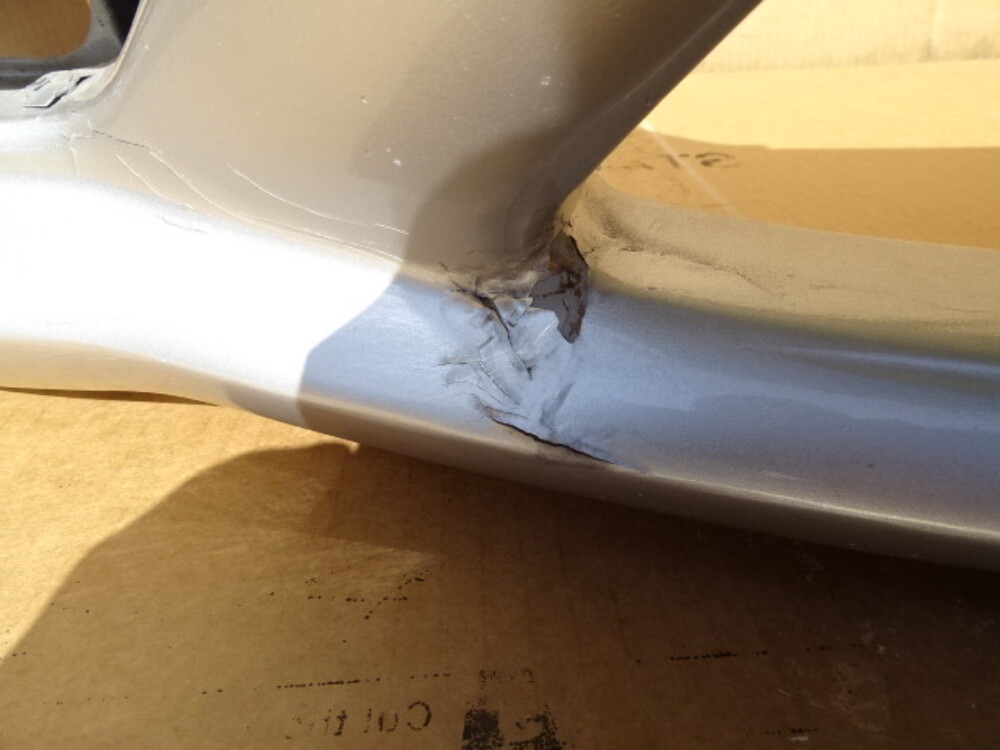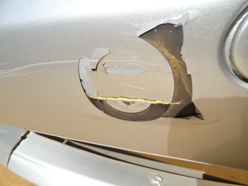 - Notes: Paint color is brilliant silver. Has a crack in the center. Few cracks by the fog lamps. Has few previous repaired spots. See photos. ( #5 #6 #10 #11 #17 ).