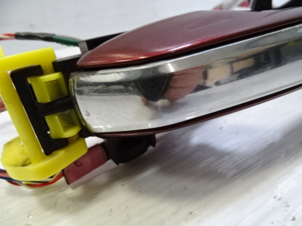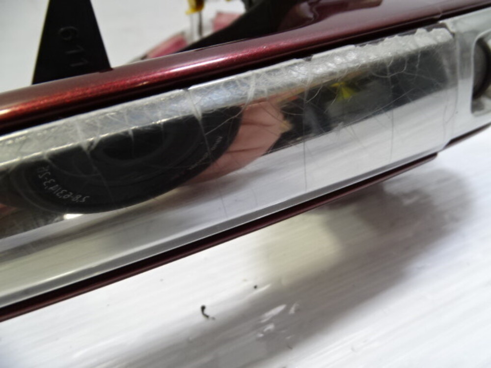Paint color is garnet red. Chrome trim has heavy wear.