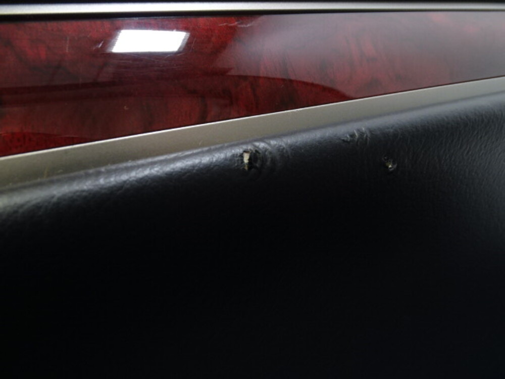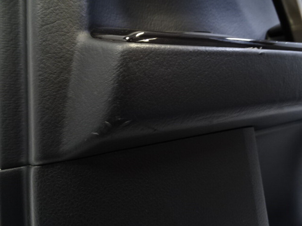 Has some gouges. Above and under the armrest.