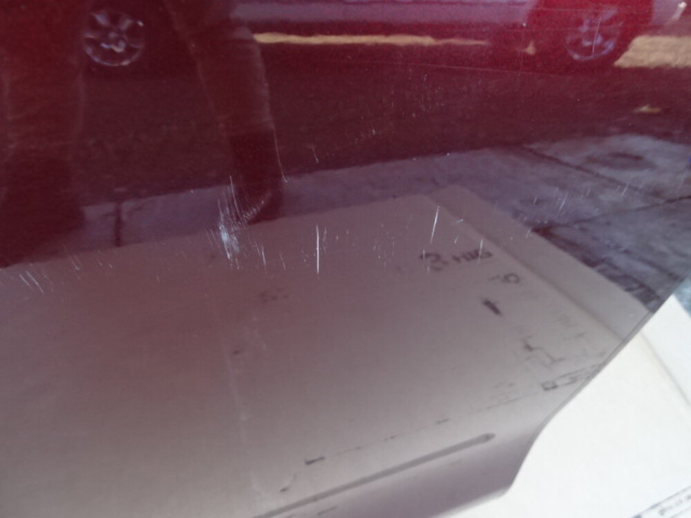 Paint color is garnet red. Has some scratches.