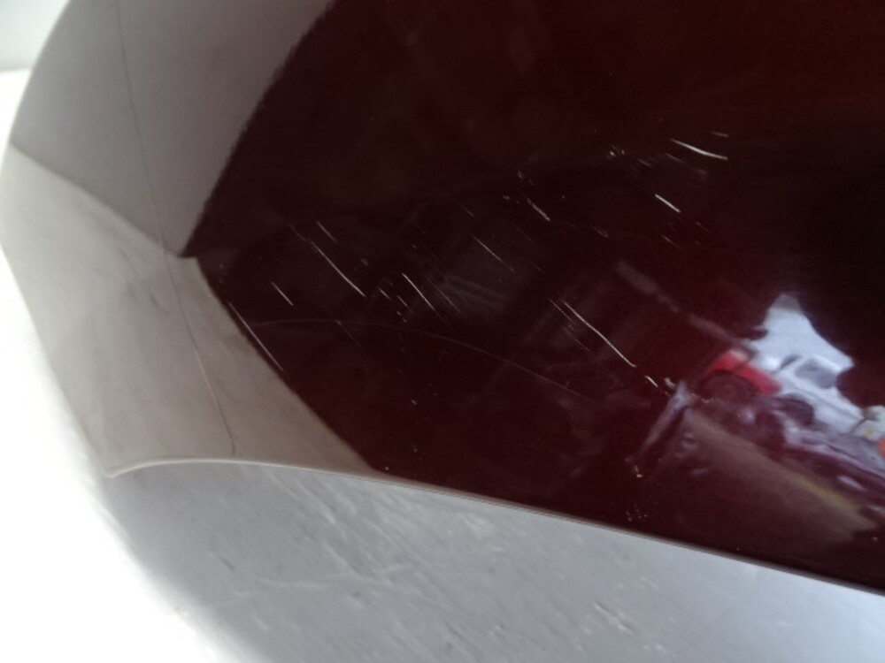 Paint color is garnet red. Has some scratches.