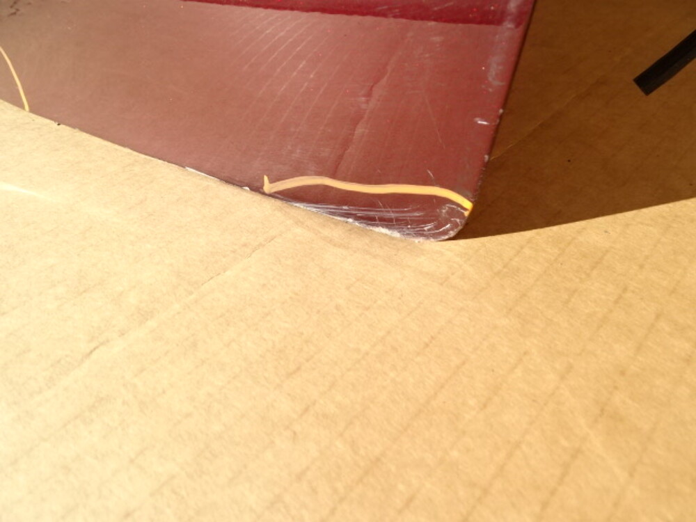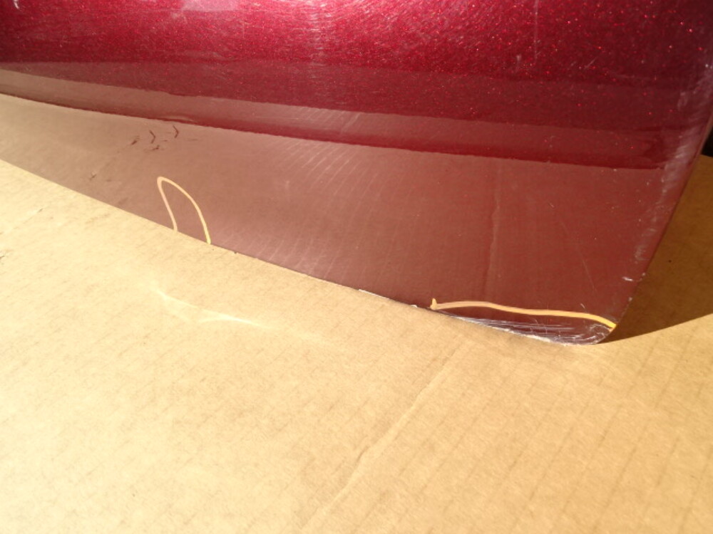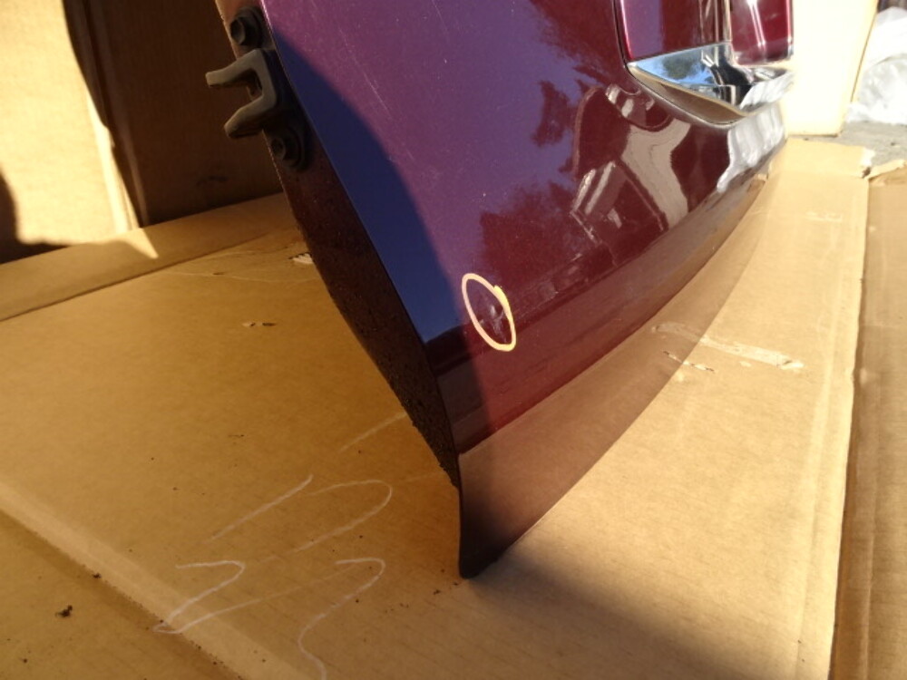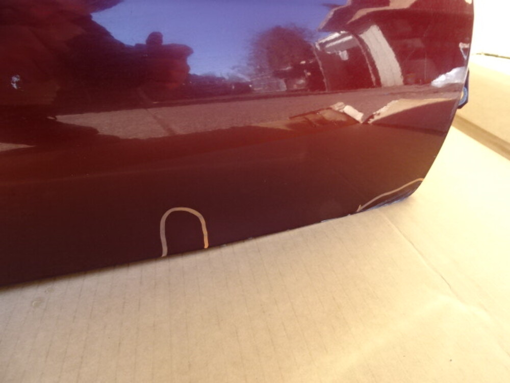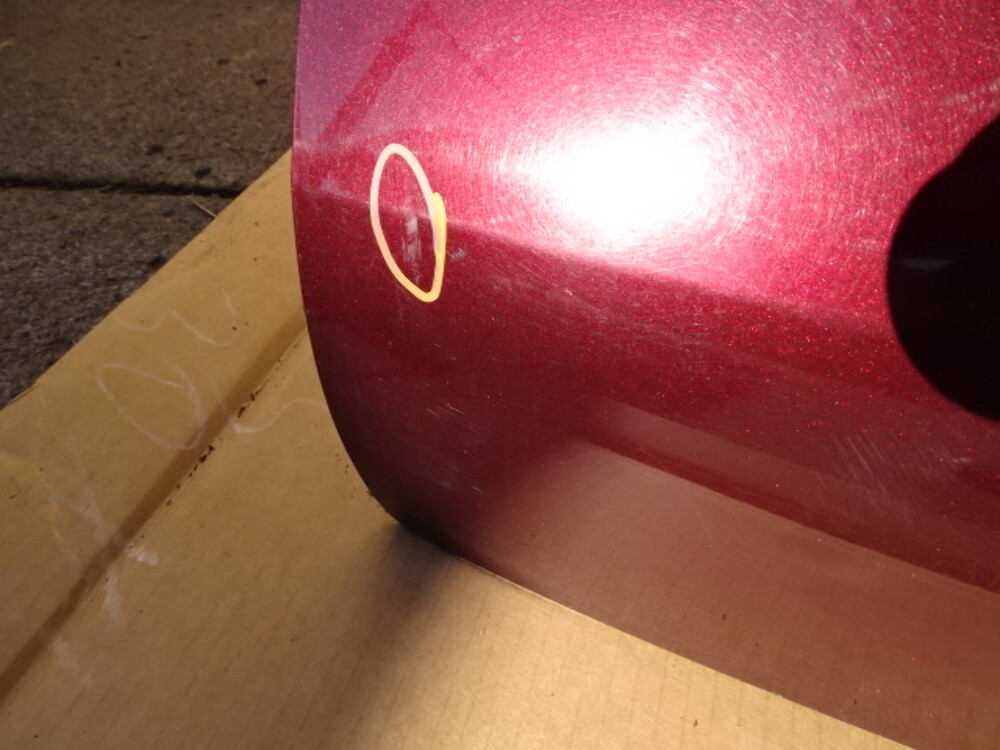 Paint color is garnet red. Has three dents circled.