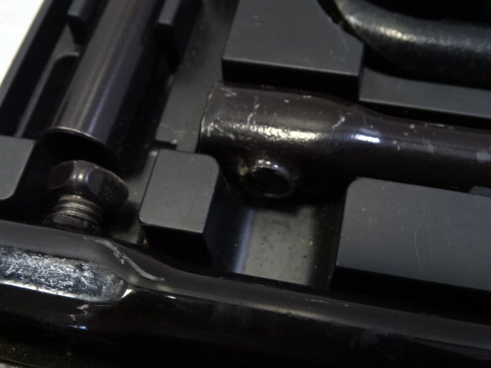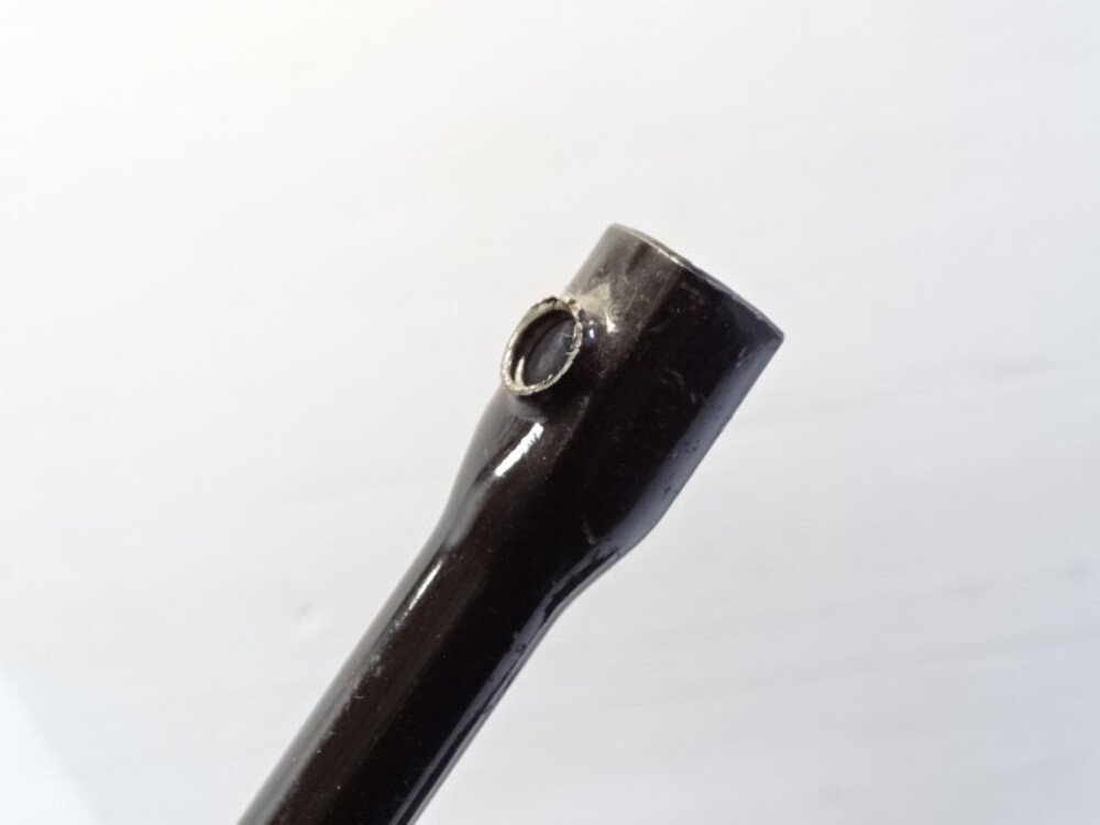 Spinning handle rod is missing a tightening bolt.