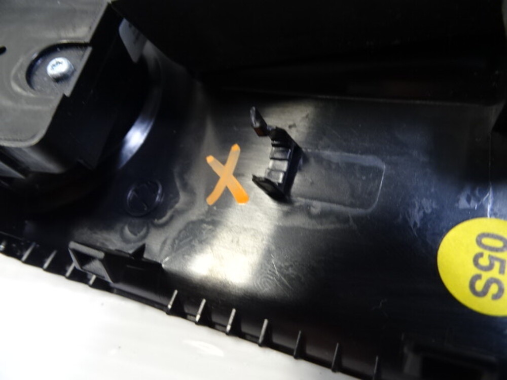Has one broken tab on the inner side of the trim. Marked with X.