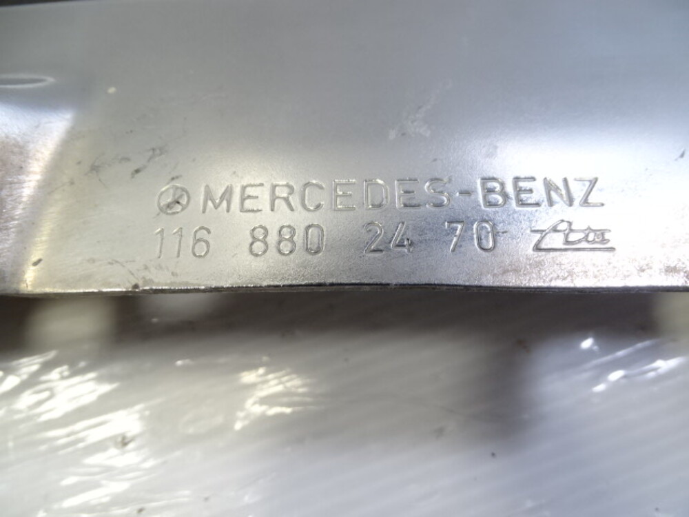 80 Mercedes W116 300SD trim, chrome bumper corner upper, right front, 1168802470
