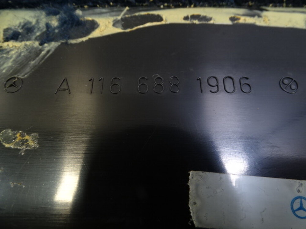80 Mercedes W116 300SD trim, interior footwell pillar cover, left front blue 1166881906