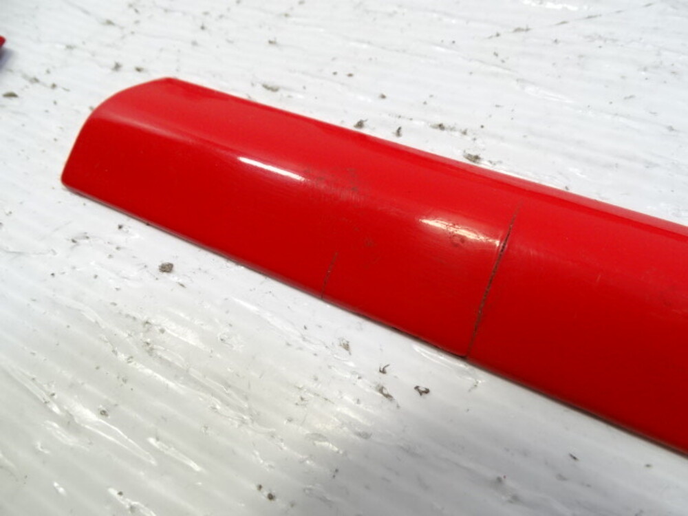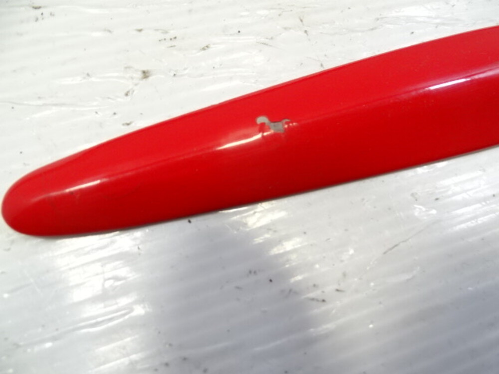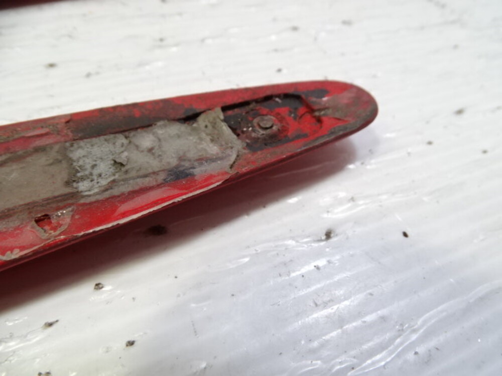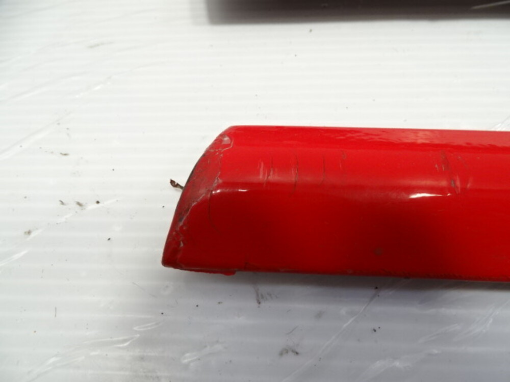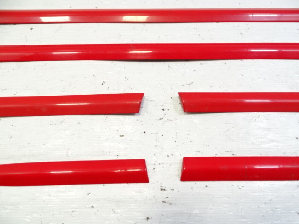 Paint color is red. Fender mouldings have broken tabs.
