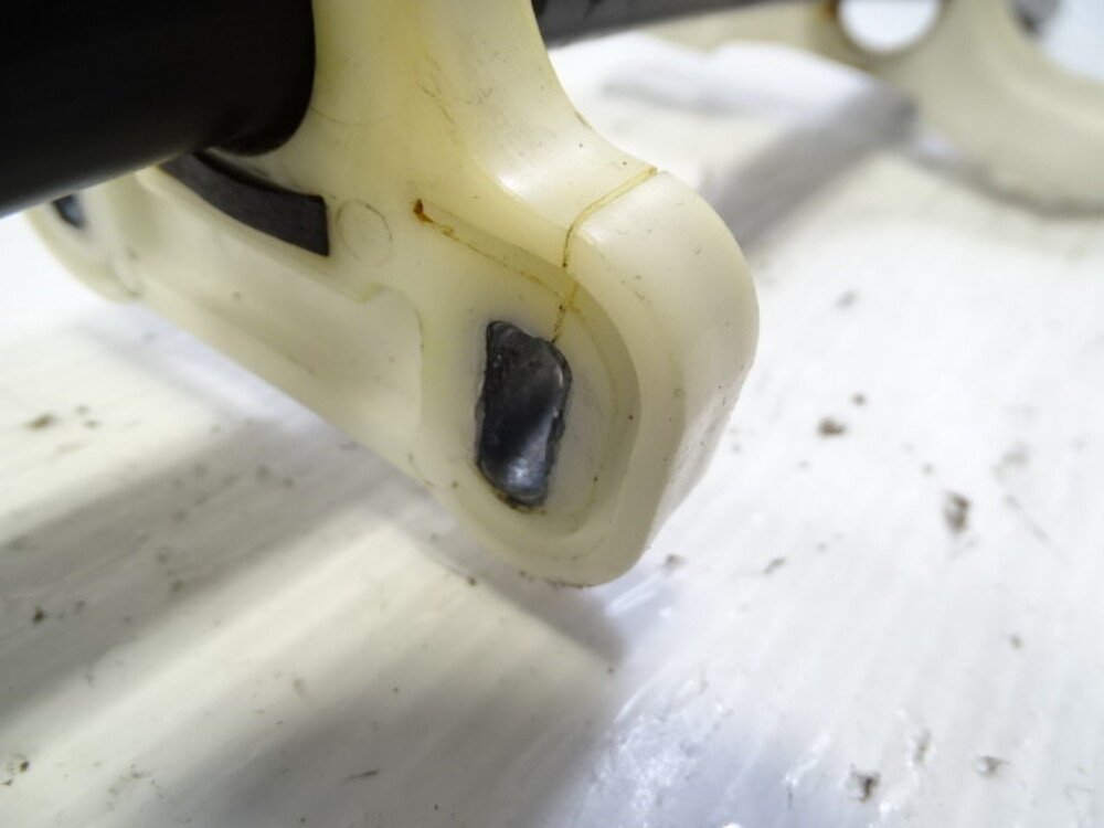 Plastic bracket has a crack.